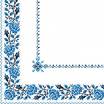 Салфетки 33х33 укр. орнамент (вишиванка Квіти синя) Марго 50шт |